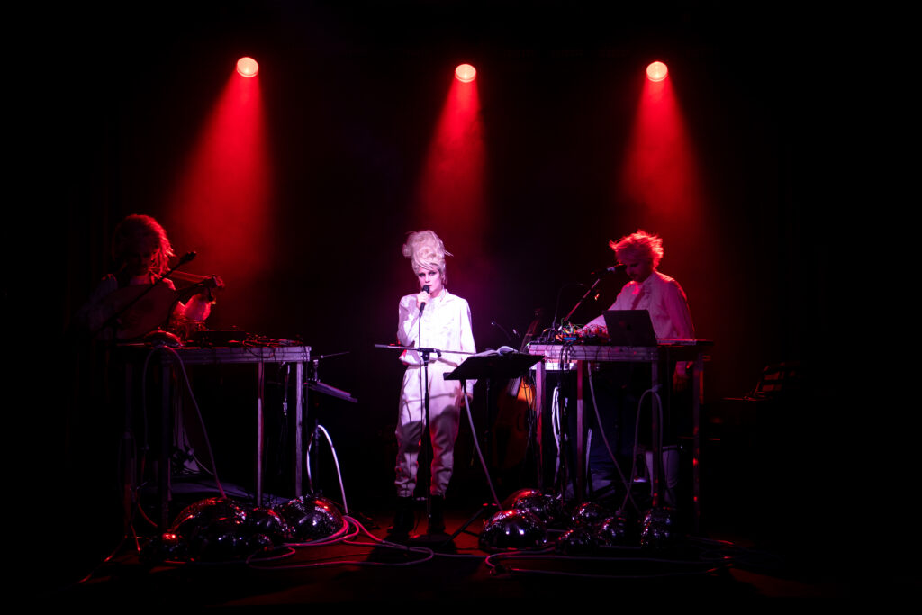 Zwischen Clubatmosphäre und barockem Klang, zwischen Text und dokumentarischen Fragmenten stellt die Performance den schwangeren Körper in den Mittelpunkt: als Ort von Stärke, Erwartung und Zuschreibung.